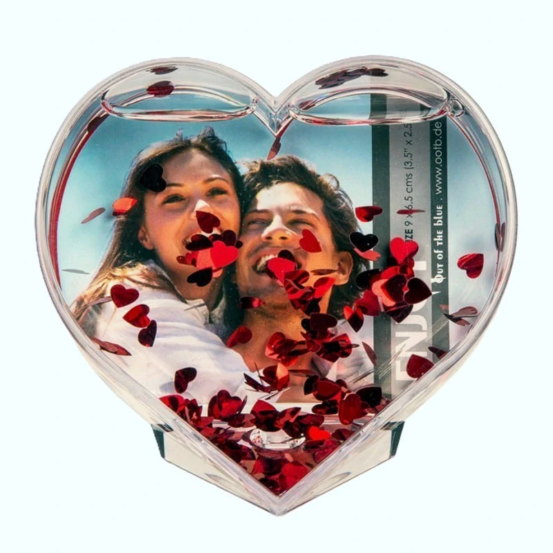 Tento Fotorámeček plovoucí srdíčkové třpytky - MALÉ SRDCE je opravdu netradiční a fascinující. Je ve tvaru srdíčka, které má stěny a přední stranu z průhledného akrylátu a je vyplněno tekutinou s červenými plovoucími třpytkami ve tvaru srdíček. V zadní části za tekutinou se třpytkami se umístí fotografie. Po zatřepání s fotorámečkem vznikne zajímavý efekt, že se před fotografií vznášejí srdíčkové třpytky ve tvaru srdce. Tento Fotorámeček plovoucí srdíčkové třpytky - MALÉ SRDCE lze také použít jako zamilované těžítko. Doporučujeme jako dárek z lásky pro všechny zamilované, tedy k Valentýnu. Je to také vhodný dárek pro ženu nebo dívku k narozeninám. Také je velice vhodný jako svatební dar, pro umístění fotky novomanželů. Dodáváme v sáčku z bublinkové fólie, doporučujeme dokoupit dárkovou tašku.