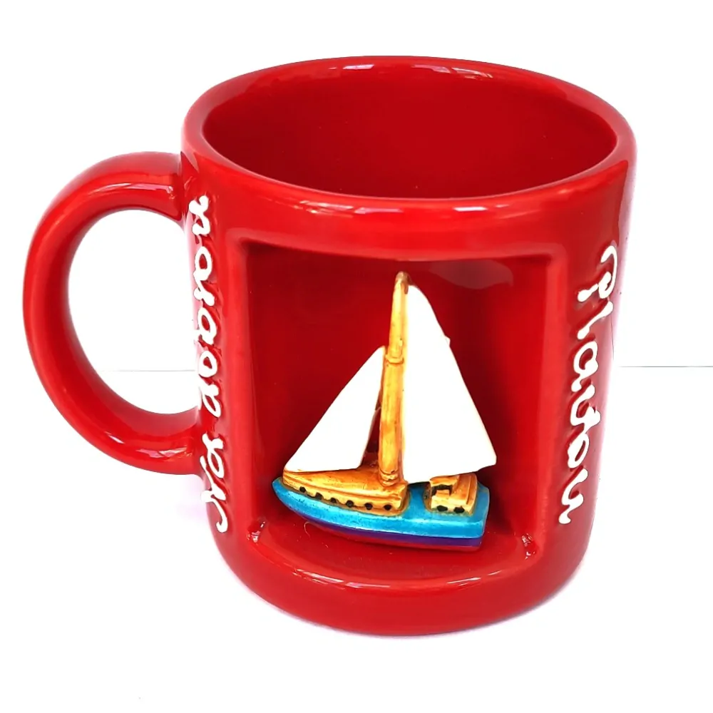 Originální hrníček plachetnice NA DOBROU PLAVBU - červená (CZ)