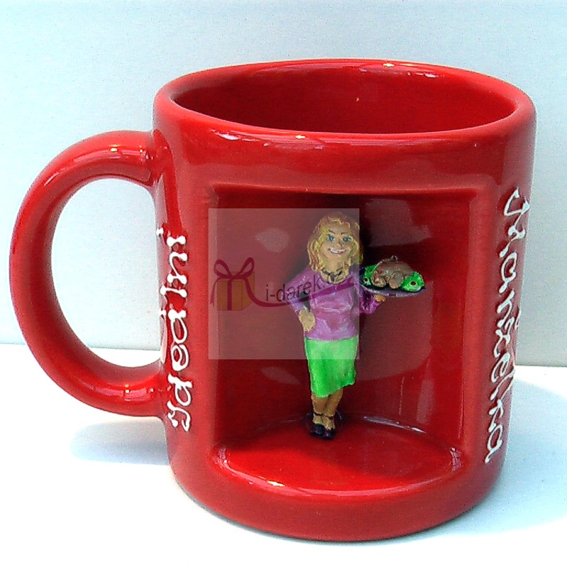 Netradiční hrnek s výklenkem, v kterém je figurka ženy. Nápis na hrnku: Ideální manželka. Skvělý a vtipný dárek pro ženu nebo manželku k narozeninám nebo k svátku. Ve spojení s originálním hrníčkem Ideální manžel se jedná o pěkný a vtipný dárek na svatbu pro novomanžele.