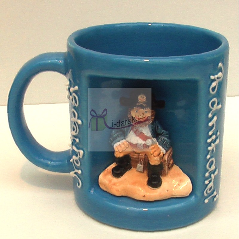Netradiční hrnek s výklenkem, v kterém je figurka piráta. Nápis na hrnku: Najlepší podnikateľ. Skvělý dárek pro muže podnikatele. Hrnek Originální hrníček pirát NEJLEPŠÍ PODNIKATEL je vtipným a originálníám dárkem k narozeninám nebo k svátku.