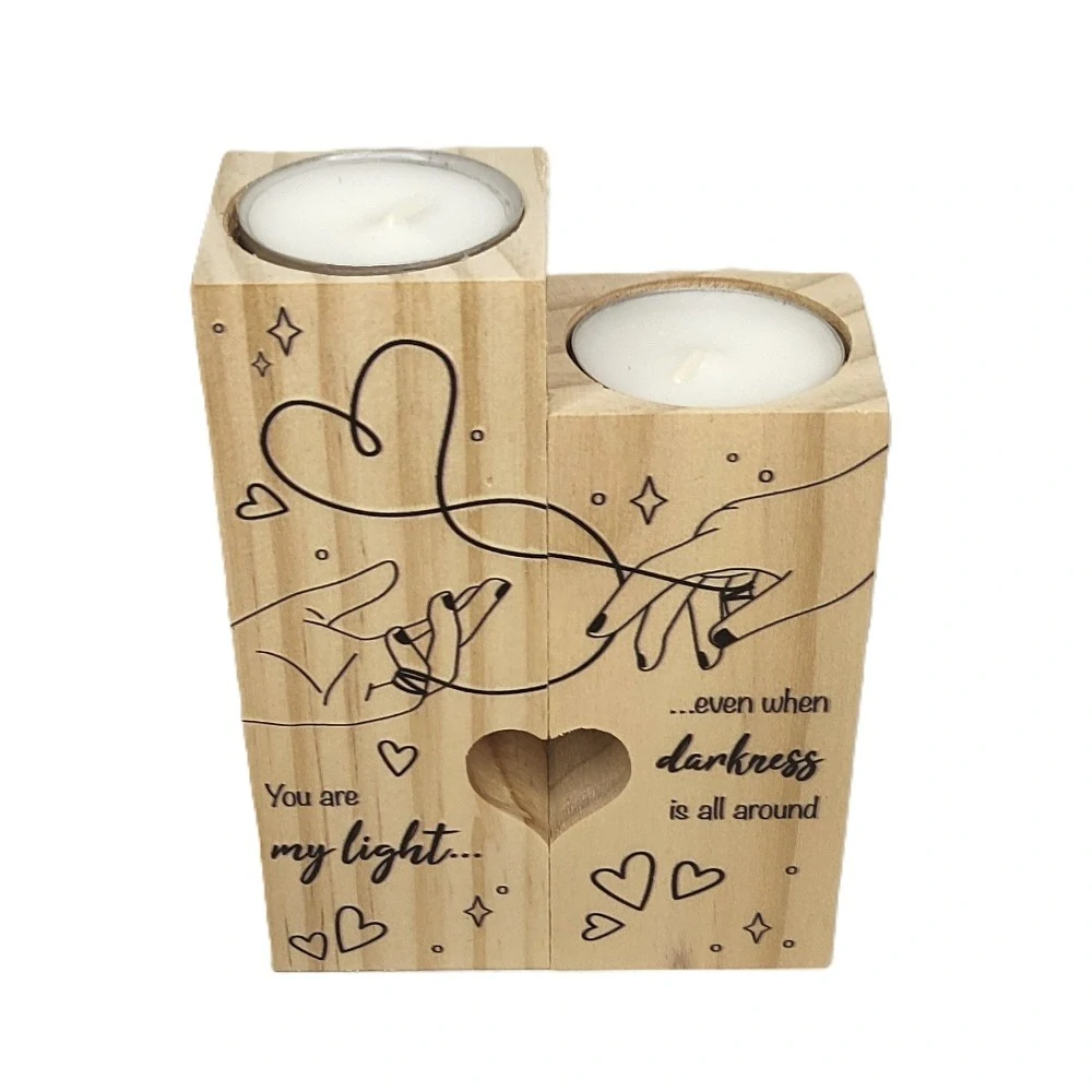Hľadáte romantický darček pre partnerku, priateľku alebo manžela, ktorý povie viac ako len „myslel som na teba"? Sada dvoch drevených svietidiel pre páry nesie posolstvo, ktoré zostane ešte dlho po tom, čo dohorí prvá sviečka.