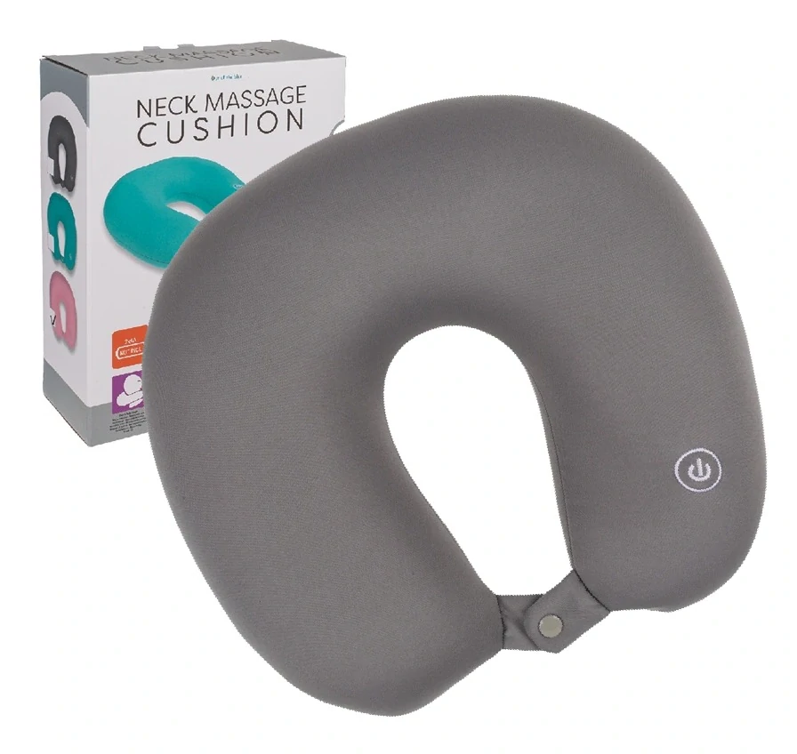 Masážny vankúšik na krk sivý - pre pohodlie na cestách