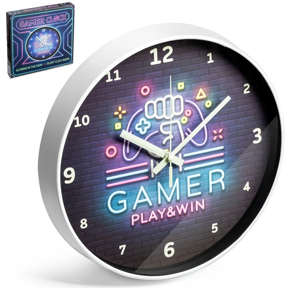 Nástenné hodiny pre hráčov svietiacich v tme – GAMER PLAY & WIN